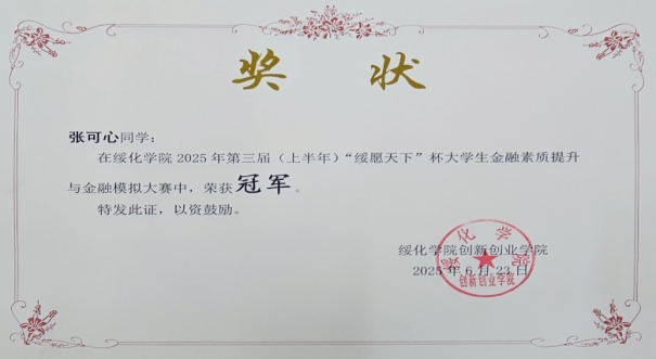 6月20日,由创新创业学院主办、经济管理学院承办、东方财富信息股份有限公司技术支持的绥化学院2025年第三届(上半年)“绥愿天下杯”大学生金融素质提升与金融模拟大赛落下帷幕。