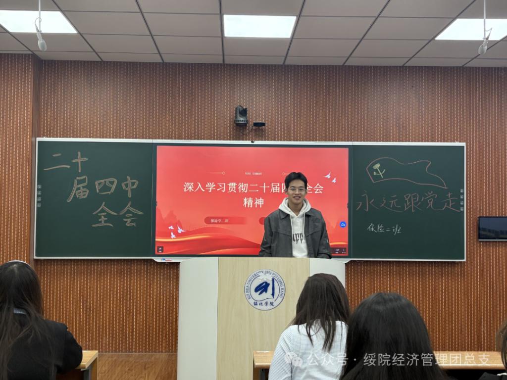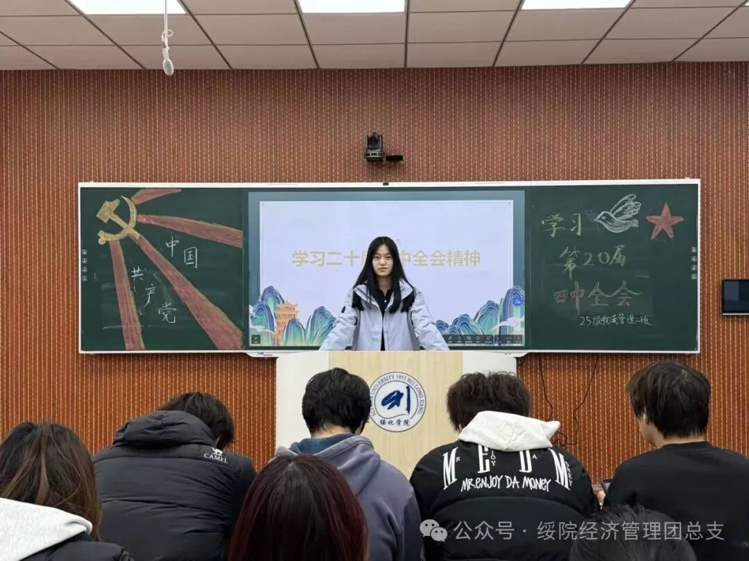 为深入学习贯彻党的二十届四中全会精神,引导广大经管学子增强政治自觉、思想自觉和行动自觉,11月5日,经济管理学院开展“学习党的二十届四中全会精神”主题团日活动。