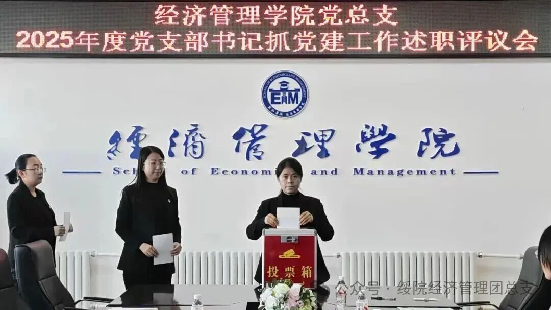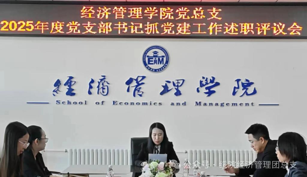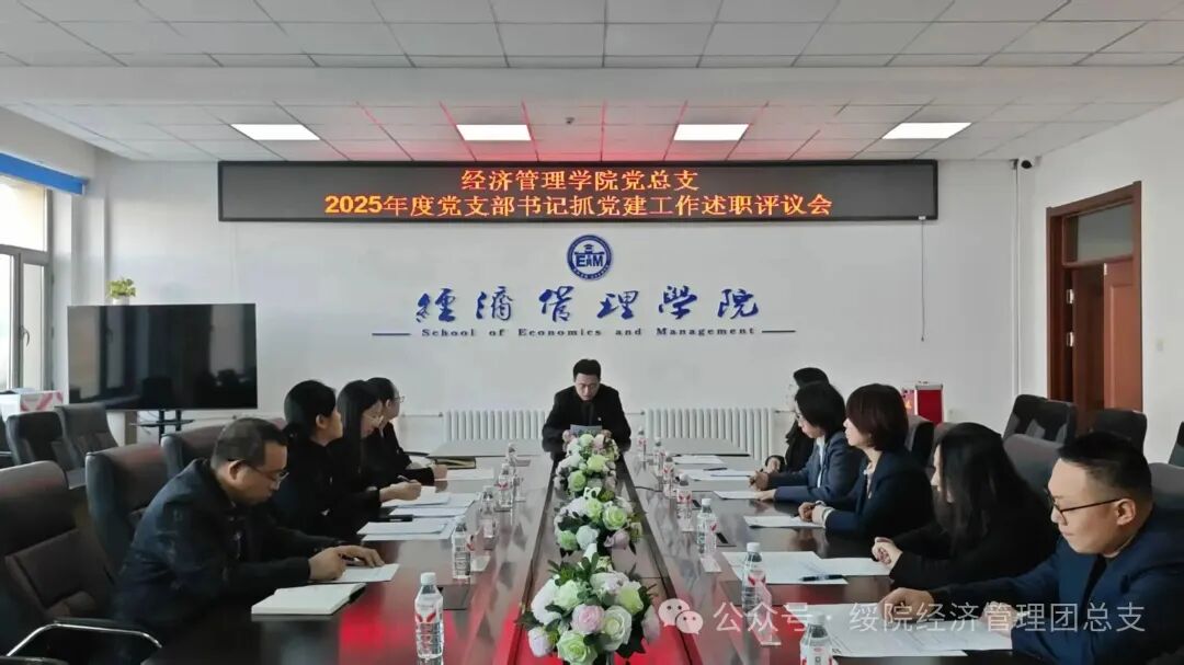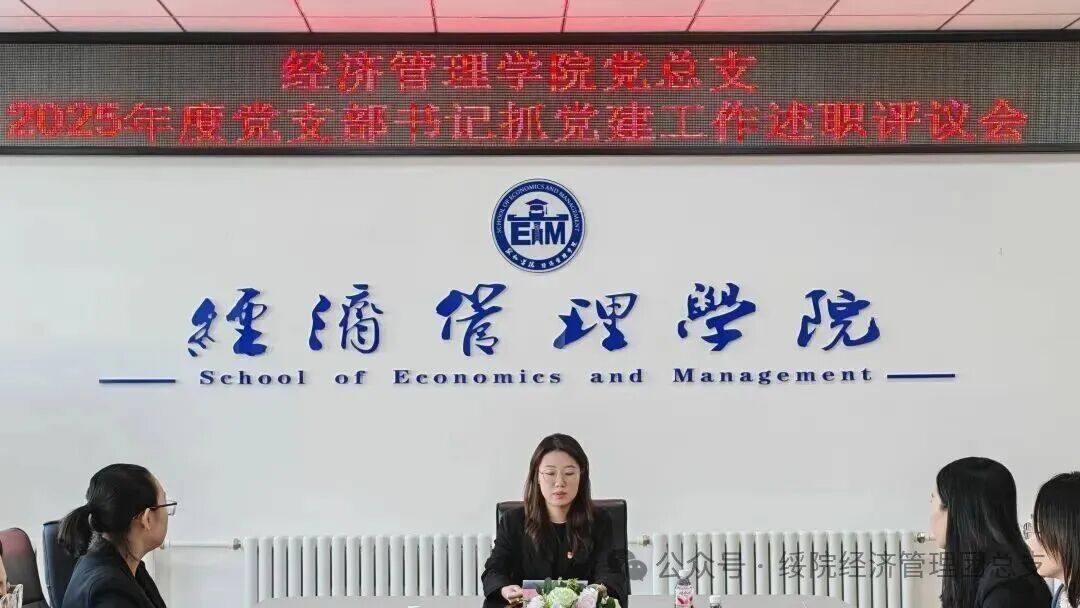 2025年12月17日,经济管理学院党总支在汇文楼413会议室召开2025年度党支部书记抓党建工作述职评议会。学院班子成员、党总支委员、党支部书记及师生党员代表参会,会议由党总支副书记丁晓燕主持。