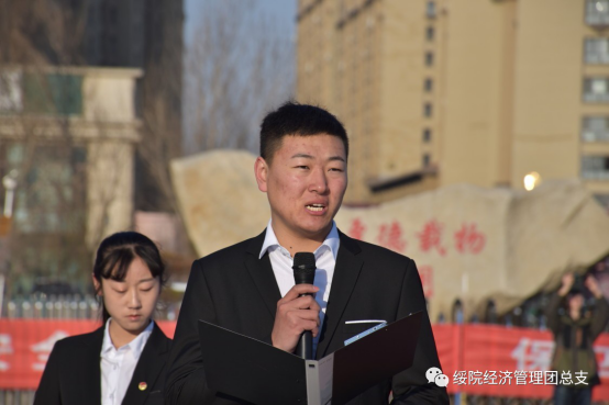 红日喷薄而出,五星红旗冉冉升起。4月15日,由经济管理学院组织,以“青春心向党,建功新时代”为主题的升旗仪式在联通广场举行。2018级辅导员张光远,学生会主席团成员和大一新生们共同参加了此次活动。