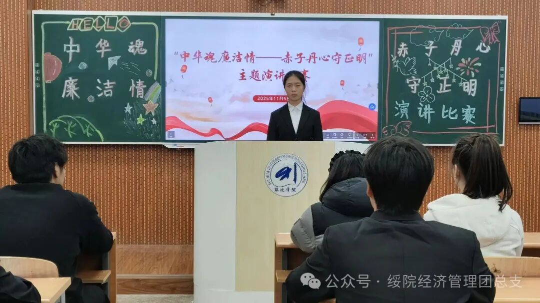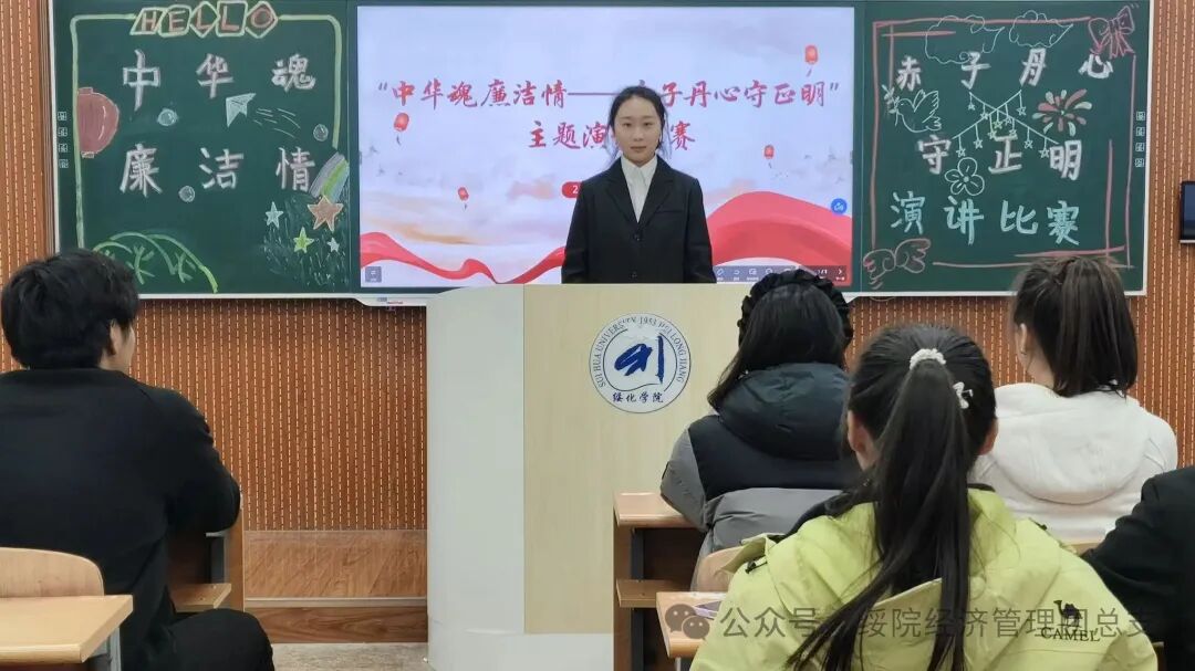 为深入推进新时代廉洁文化建设,传承中华文脉中“廉为政本、清为德要”的千年智慧,引导经管学子筑牢廉洁自律思想防线,11月6日,经济管理学院举办“中华魂 廉洁情——赤子丹心守正明”主题演讲比赛。