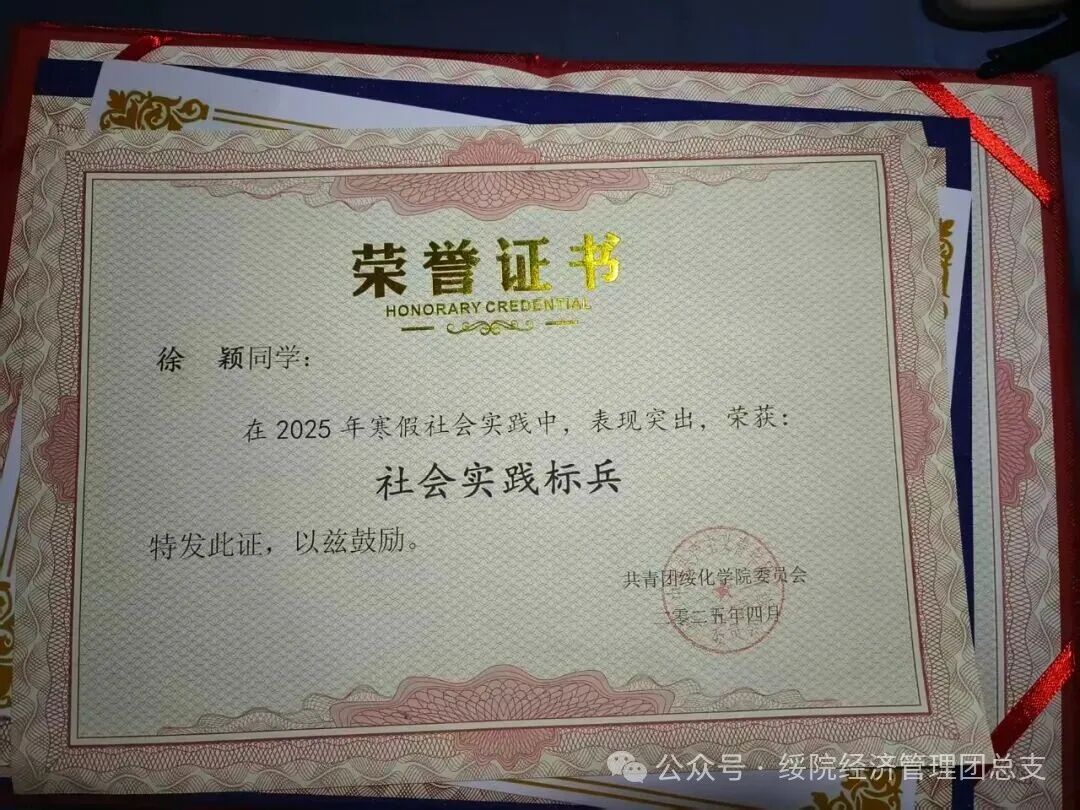 在生活中,徐颖同学性格开朗亲和,是班级里的“暖心搭子”,常主动帮同学梳理学习难点;同时积极参与社会实践与志愿服务活动,在实践中锻炼沟通能力,也用行动传递青年温度。