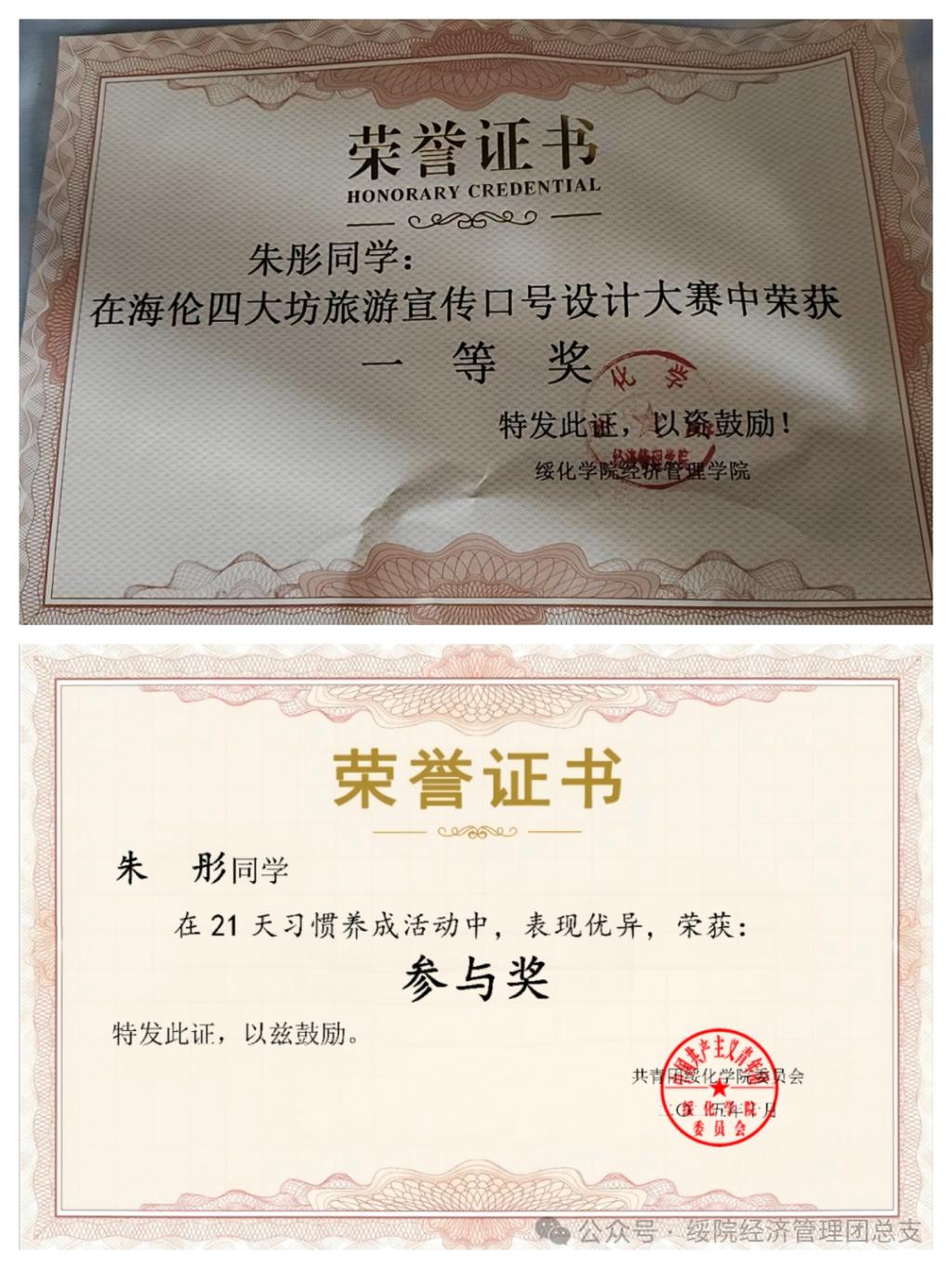 朱彤,女,汉族,绥化学院经济管理学院2024级旅游管理专业1班学生。曾获2024-2025学年国家励志奖学金,校发二等奖学金,海伦四大坊民俗文化村旅游宣传口号设计大赛一等奖,21天习惯养成活动参与奖。