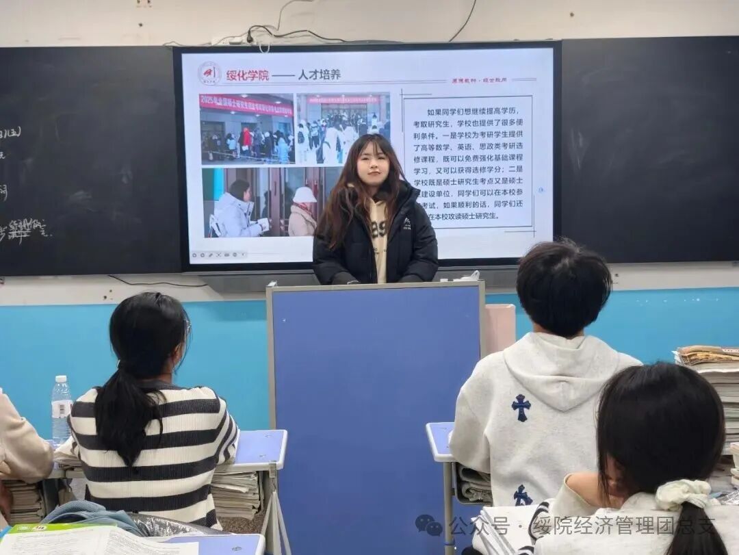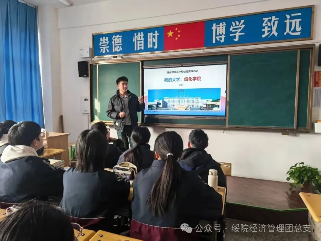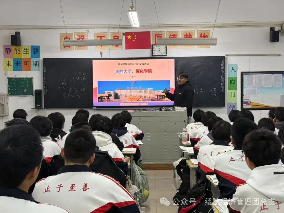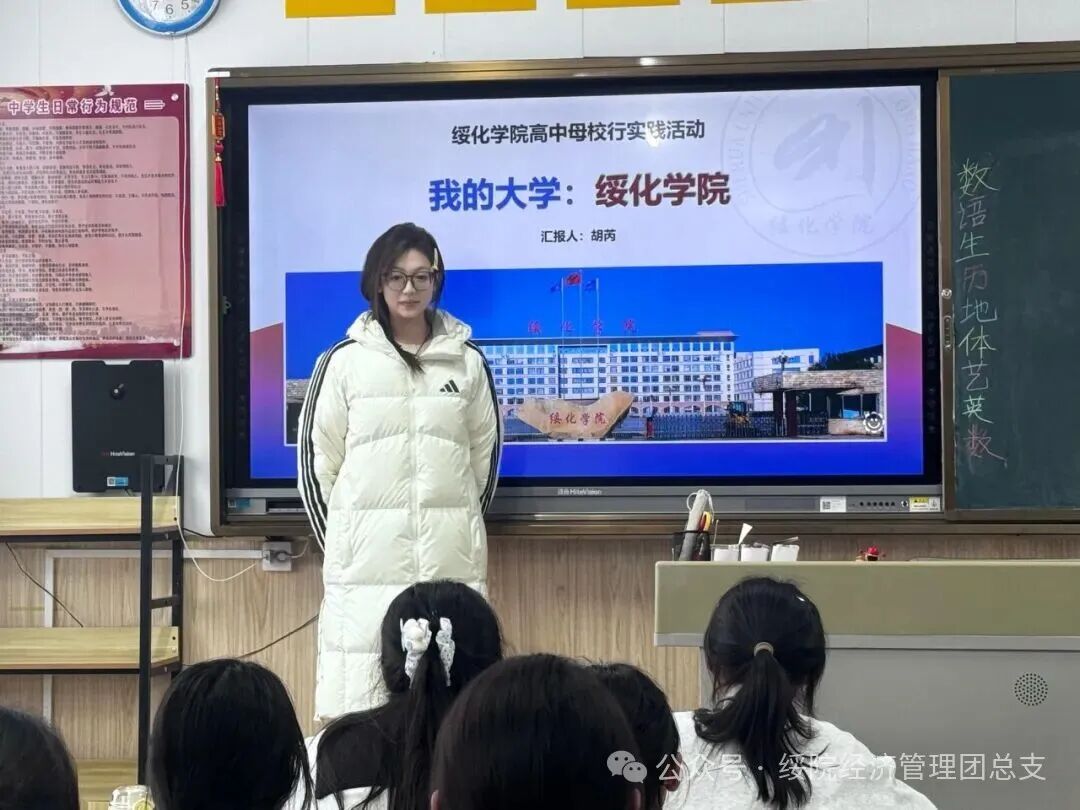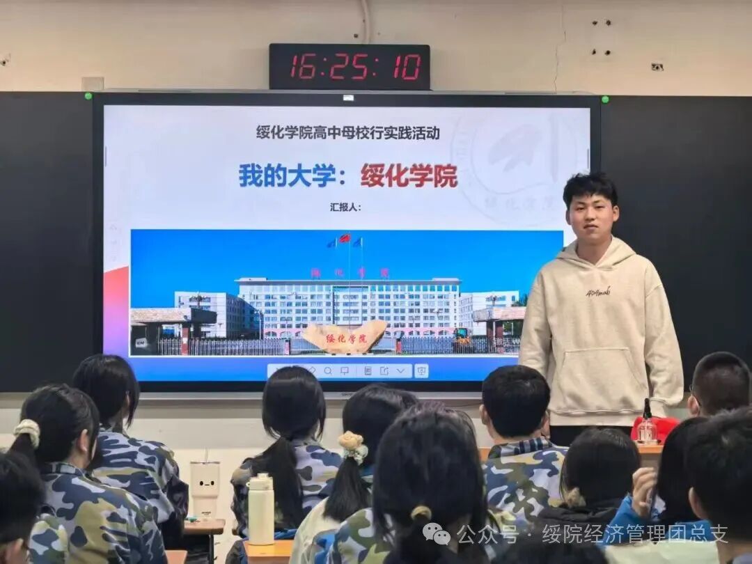恰逢高中母校行社会实践活动的契机,我重返高中课堂,重点分享了绥院经济管理学院的实践教学特色。当学弟学妹追问专业实习的具体内容时,我才发觉,那些在绥院参与的校企项目、实训课程,都是讲好学院故事的鲜活素材与真诚的分享。