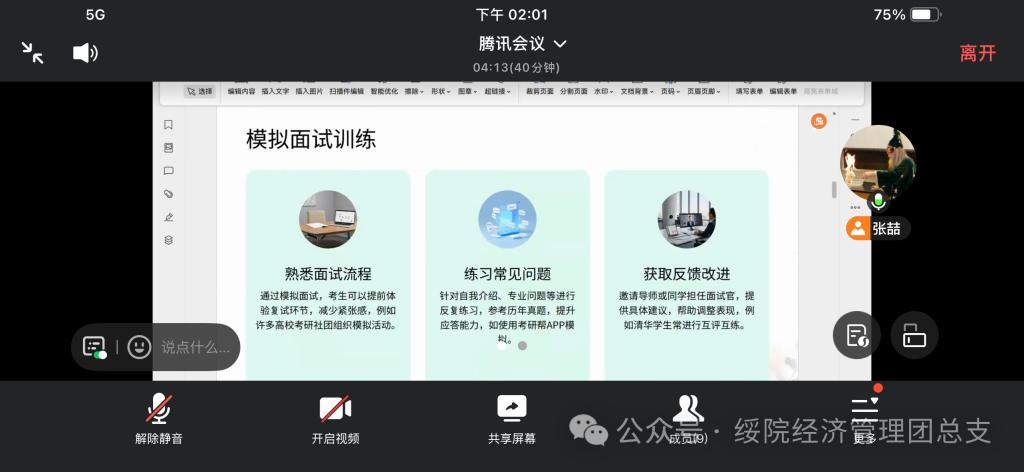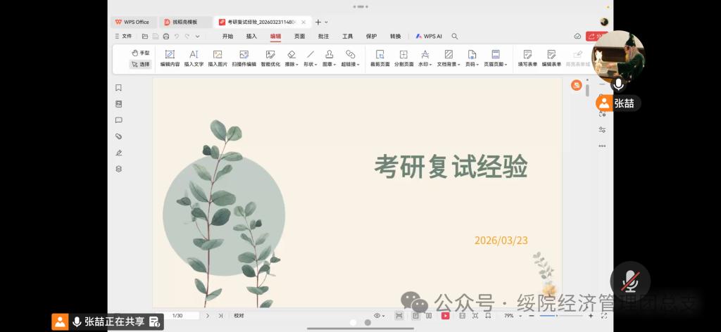 助力学子备战考研复试,明晰备考方向,精准提升复试竞争力,3月23日,经济管理学院举办“经管研途·薪火相传——优秀校友助力考研之路”考研复试经验分享会第三期,本期经验分享会2021级考研上岸优秀学生张喆为主讲人。