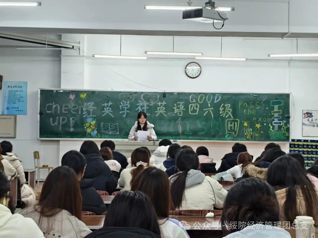 为帮助经管学子明晰四六级考试题型特点、掌握科学备考方法,缓解备考焦虑,提升英语综合应用能力与考试通过率,11月23日,经济管理学院经英学社开展英语四六级经验分享会。