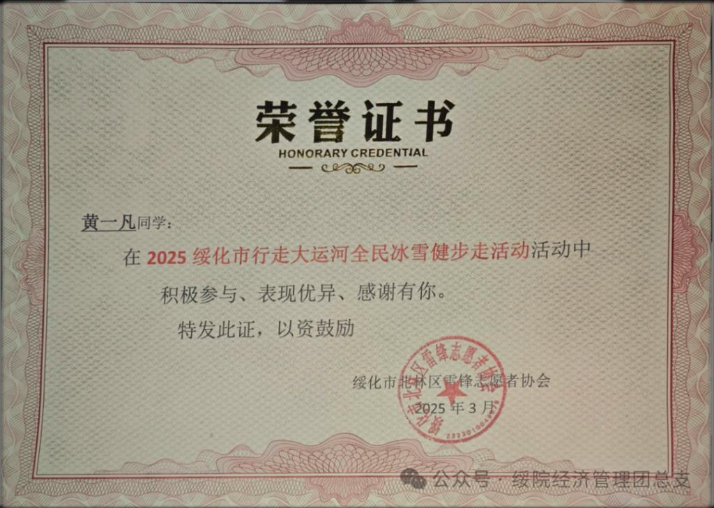 生活上,黄一凡同学积极投身社会服务,多次参与社区关爱、环境保护等公益活动。她将奉献精神付诸行动,在实践中锤炼沟通协作与解决实际问题的能力,并不断深化对社会责任的理解,展现了知行合一、担当有为的青年风貌。