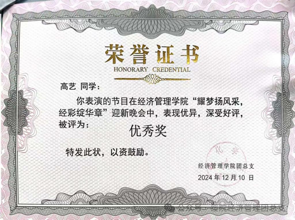 “不是所有青春都自带光芒,但奋斗的脚步总能把平凡活成滚烫”,在经济管理学院中,有这样一批学子,他们以笔为舟,在专业课程的深海里锚定航向;以行作帆,在实践赛场的风浪中扬起实干船桅;以心作炬,在集体服务的微光里传递青年温度。他们的奋斗拼搏激励着经管学子砥砺前行、不惧困难。下面,让我们走进这些2023-2024年国家励志奖学金获得者他们的奋斗历程,共同领略他们的青春精彩!