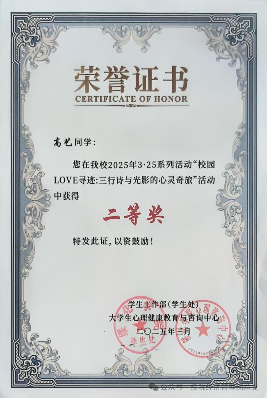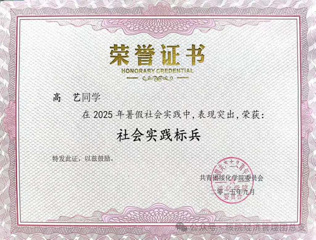 生活上,高艺同学积极投身社会实践与志愿服务活动,展现了强烈的社会责任感和奉献精神。她多次参与社区服务、公益宣传、敬老爱幼等志愿活动,踏实肯干,尽心尽力,充分体现了青年学子的担当与风采。